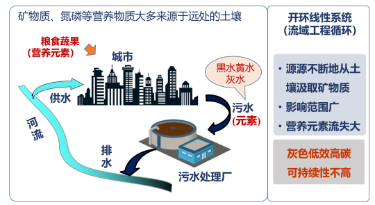 通过这三个边界,我们可以更全面地理解城市水系统的复杂性和相互关联性。如,这个系统相当于源源不断地把从土壤中汲取的矿物质排放到下游,返回不到原产地的土壤。这种模式显然不可持续,必然导致土壤贫瘠化,微量元素含量逐年减少,影响植物的生长。目前,植物所需养分主要通过化肥补充,但主要局限于氮、磷、钾,全面补充微量元素存在现实困难。